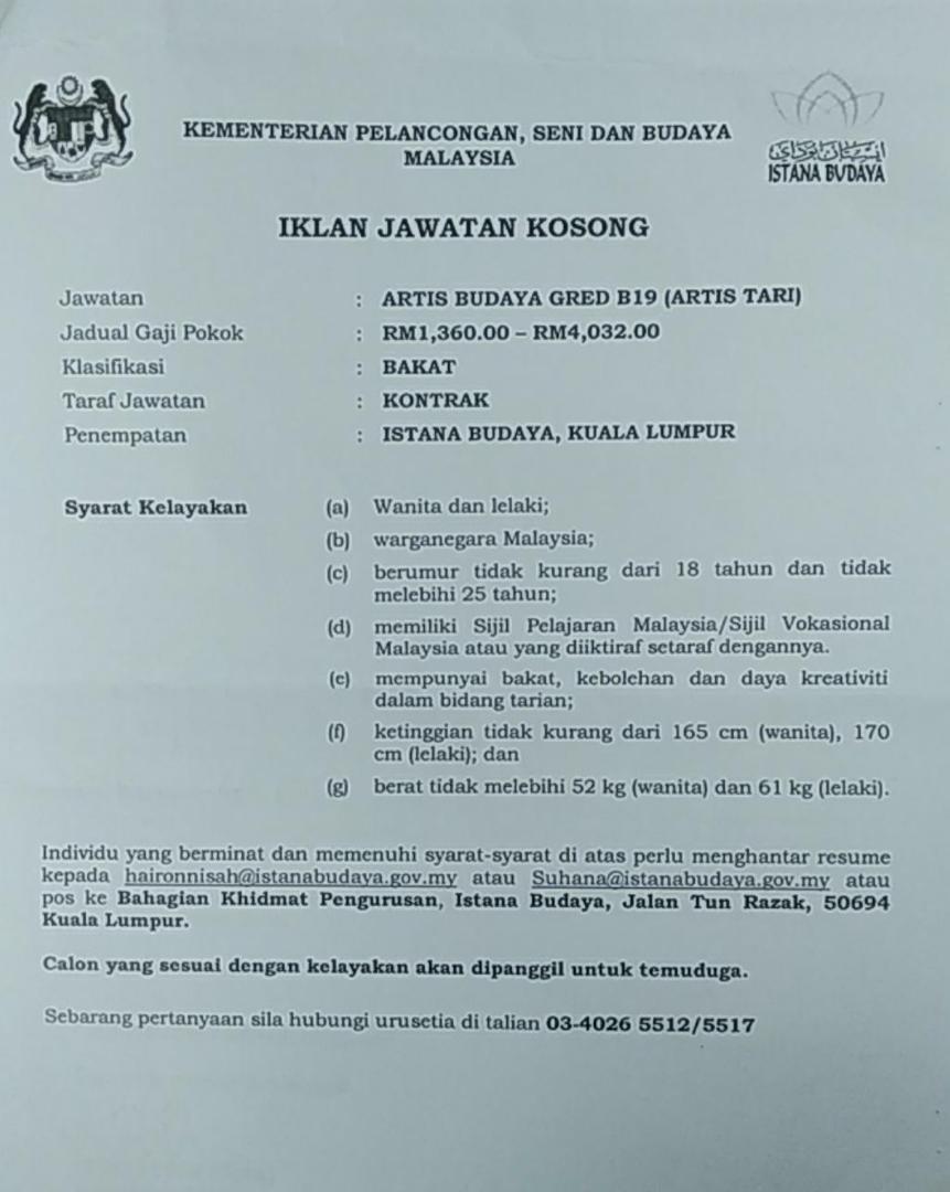 Permohonan Jawatan Kosong Kementerian Pelancongan, Seni Dan Budaya Malaysia.