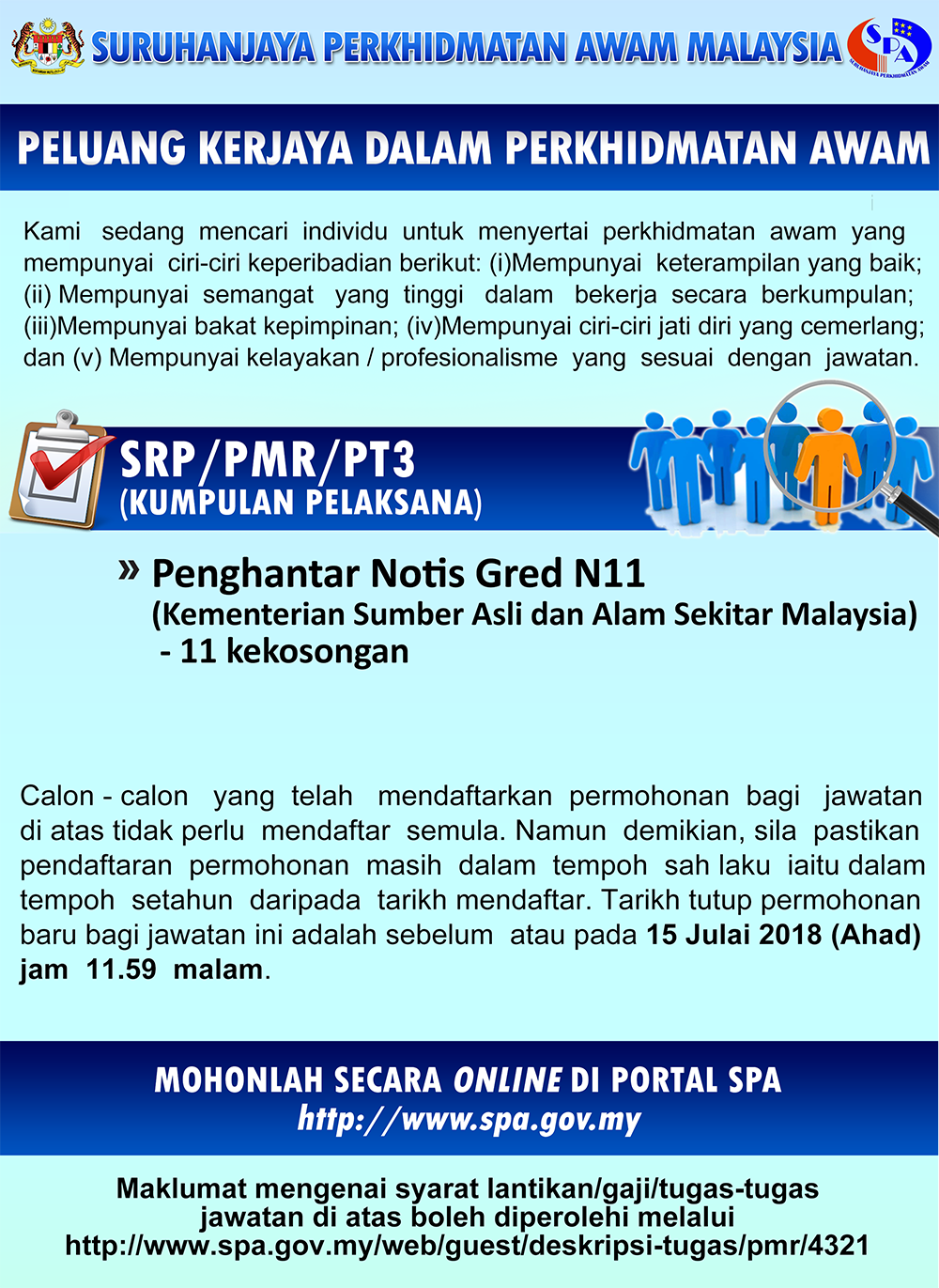 Permohonan Jawatan Penghantar Notis N11 Kementerian Sumber Asli & Alam Sekitar.