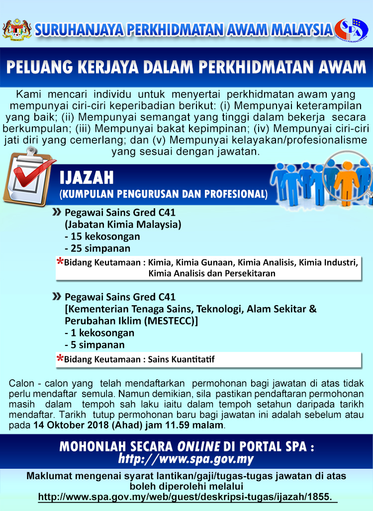 - Tarikh Tutup Permohonan: 14 Oktober 2018