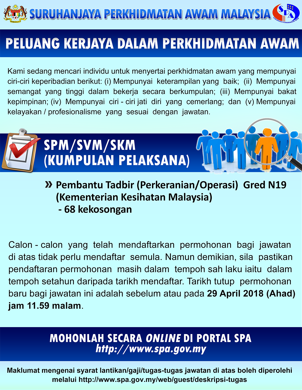 - Tarikh Tutup Permohonan: 29 April 2018