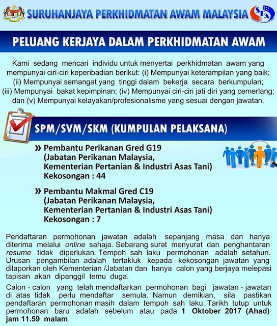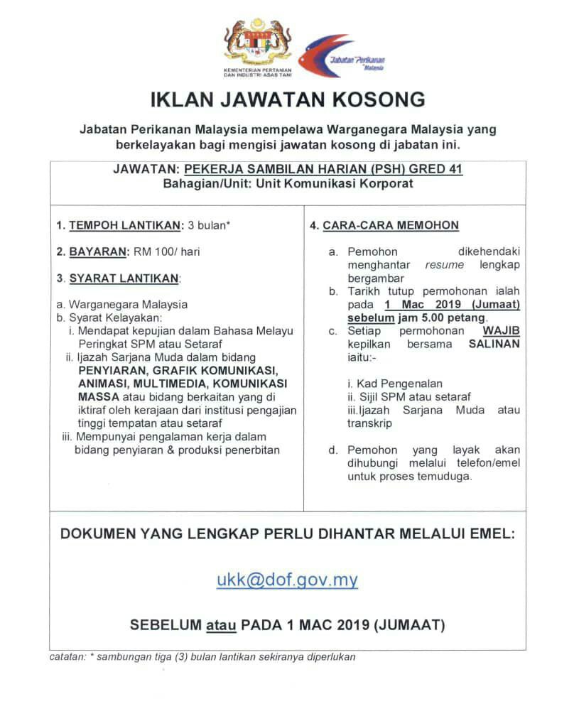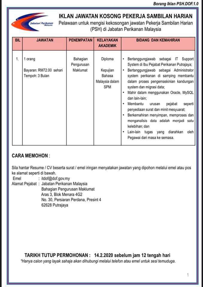 Return to "Jabatan Perikanan Malaysia. Permohonan Terbuka Seluruh Negeri Ambilan Perkhidmatan Awam" Jawatan Kosong Jabatan Perikanan Malaysia (1) Next