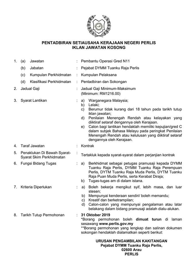 - Nama Majikan: Pentadbiran Setiausaha Kerajaan Negeri Perlis