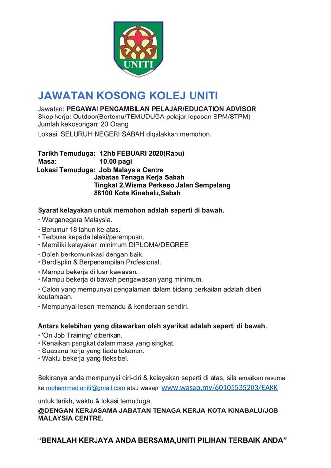 Permohonan Jawatan Kolej Uniti Sabah.