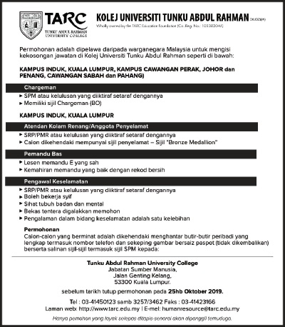 Kolej Universiti Tuanku Abdul Rahman (TARUC) ~ Pelbagai Kekosongan Jawatan