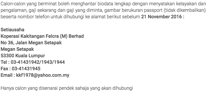 Jawatan Kosong Terkini Koperasi FELCRA (M) Berhad.