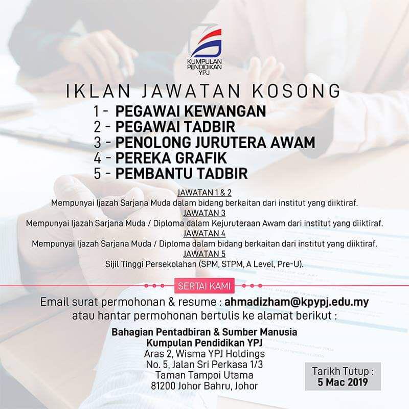 Permohonan Jawatan Kosong Kumpulan Pendidikan YPJ.