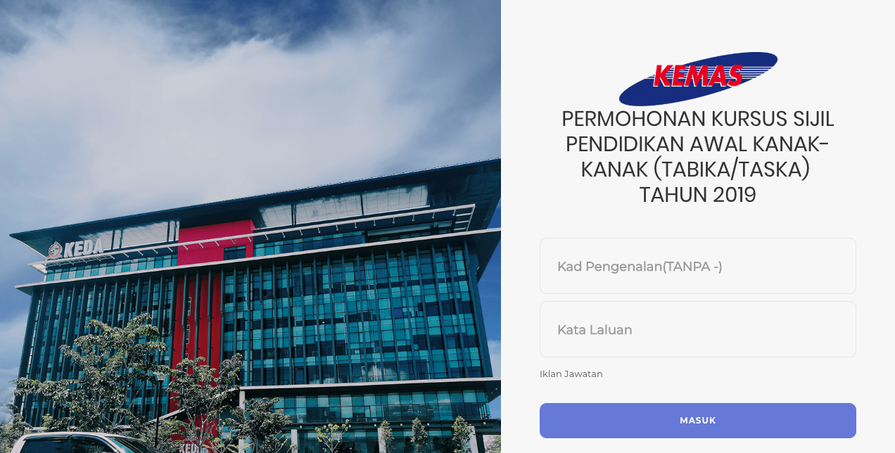 berkelayakan membuat permohonan bagi mengikuti Kursus Sijil Pendidikan Awal Kanakkanak (TABIKA / TASKA) KEMAS pengambilan Tahun 2019.