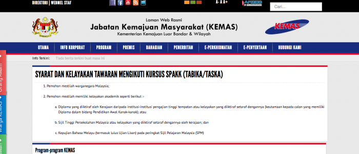 PERMOHONAN ONLINE KURSUS SIJIL PENDIDIKAN AWAL KANAK-KANAK TABIKA/TASKA KEMAS 2019