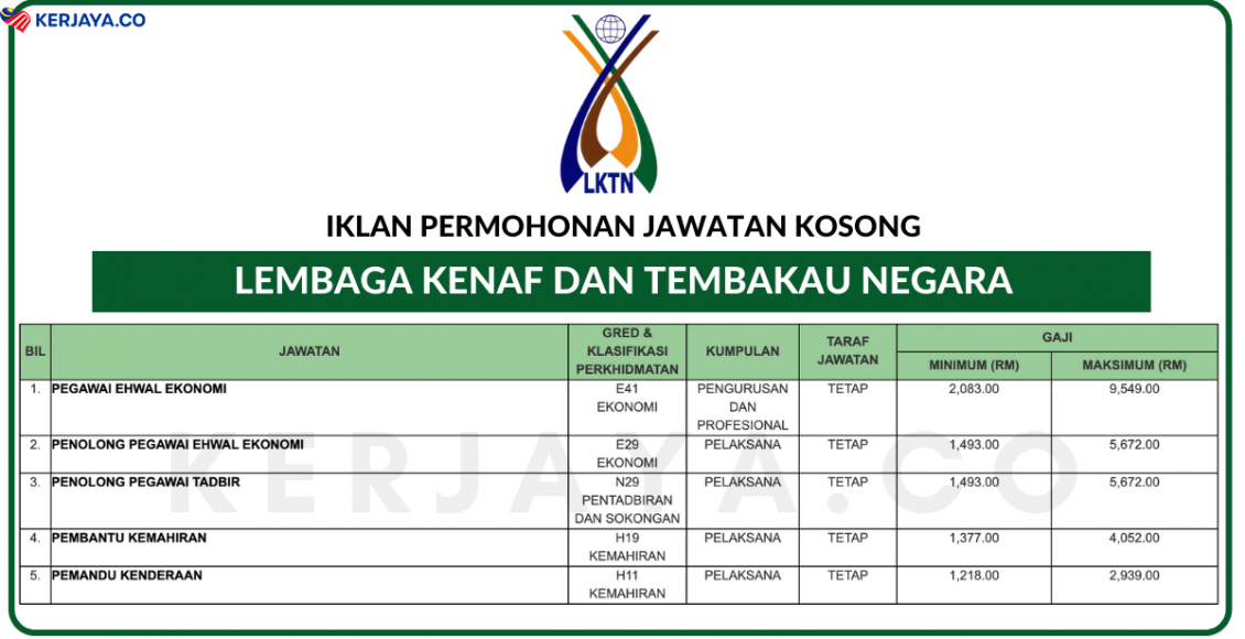 - Nama Majikan: Lembaga Kenaf dan Tembakau Negara (LKTN)