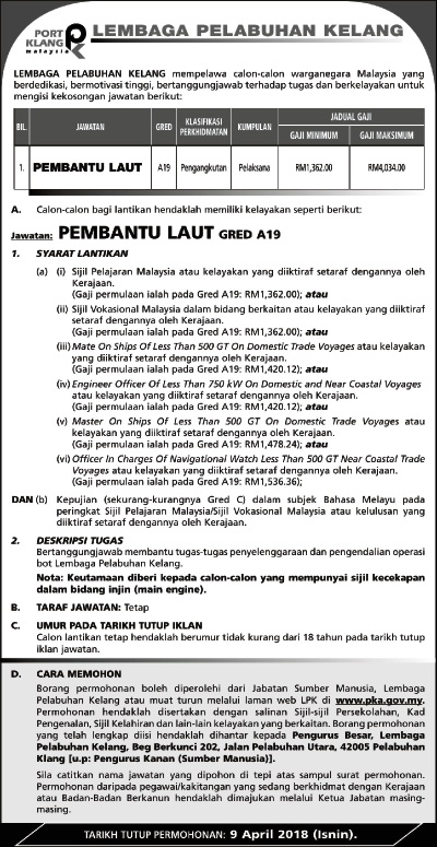 - Nama Majikan: Lembaga Pelabuhan Kelang