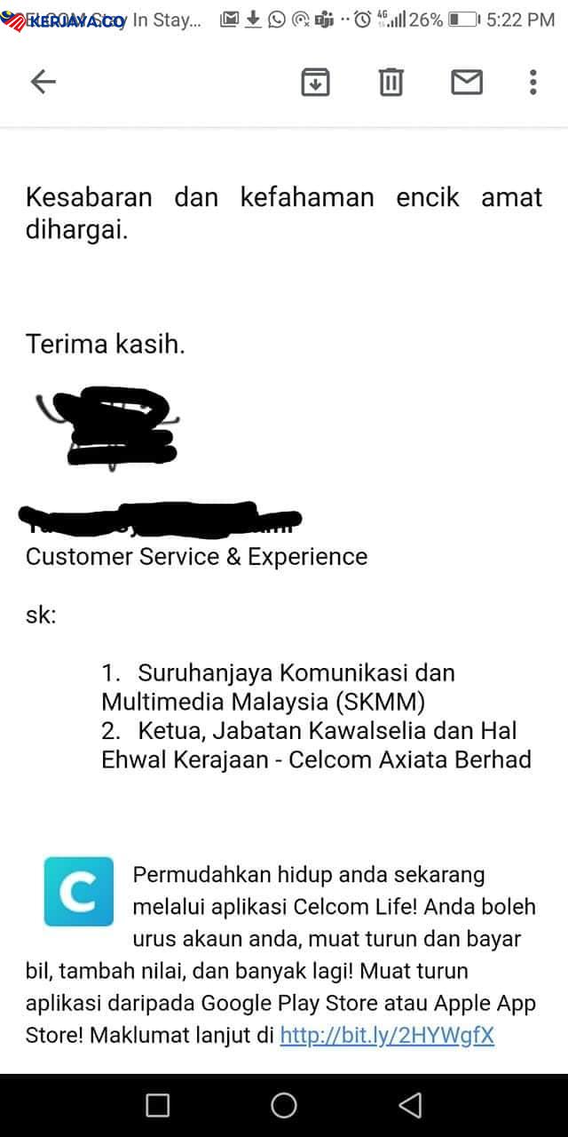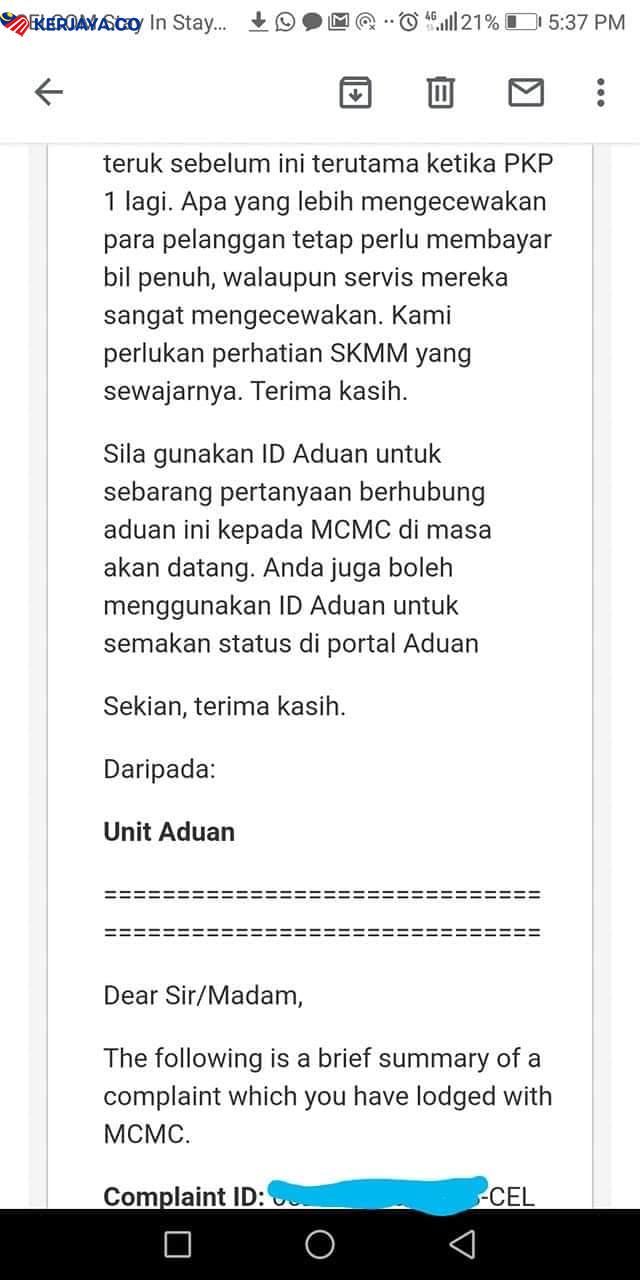 5. Kemudian, aduan anda akan terus dipanjangkan kepada telco yang telah ada nyatakan.