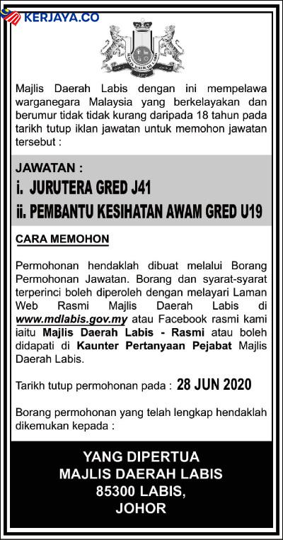 Permohonan Jawatan Kosong Majlis Daerah Labis.