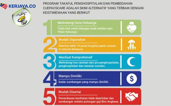 Berikut adalah perkongsian mengenai keistimewaan, kadar bayaran dan cara daftar Program Insurans Takaful Penjawat Awam CUEPACSCARE