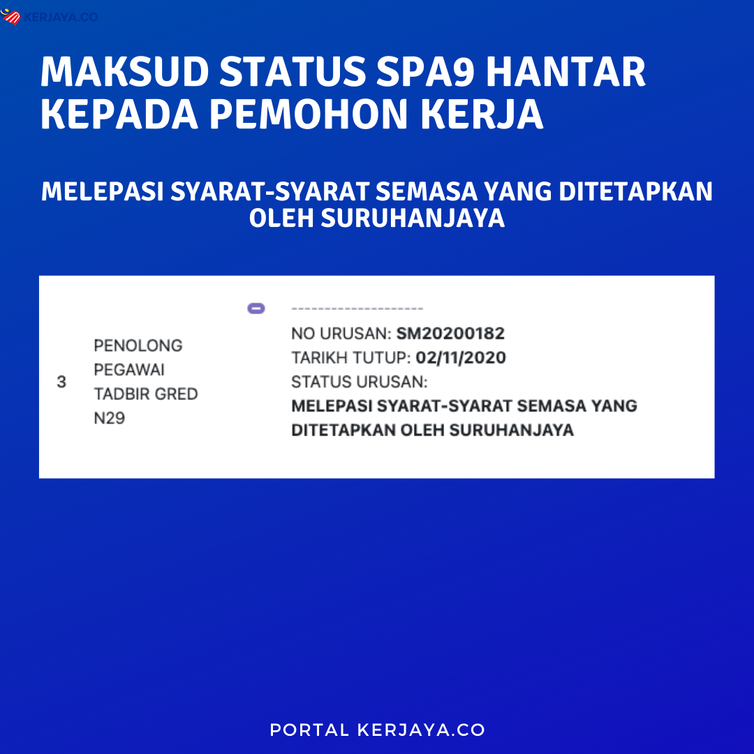 Jika anda sudah berjaya mohon kerja dalam Sektor Perkhidmatan Awam melalui Sistem Pendaftaran Pekerjaan Suruhanjaya Perkhidmatan Awam Malaysia (SPA9), anda wajib tahu apa maksud di sebalik status-status permohonan semasa yang dipaparkan di laman semakan status anda.