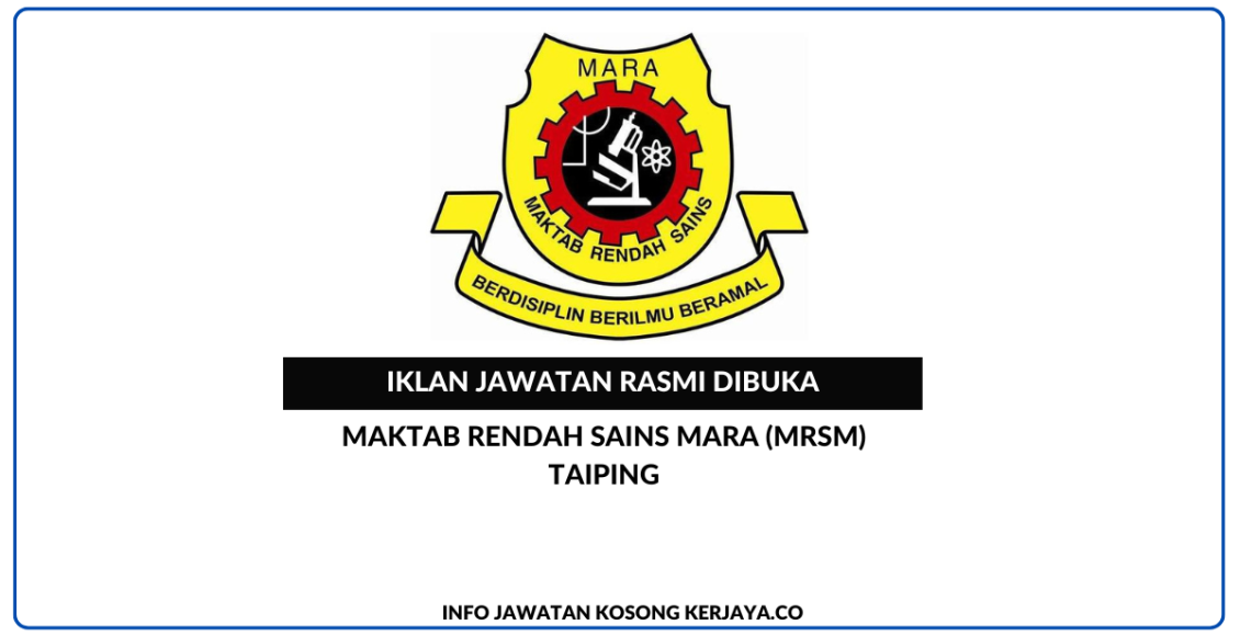 Permohonan Jawatan Kosong Maktab Rendah Sains MARA (MRSM) Taiping.
