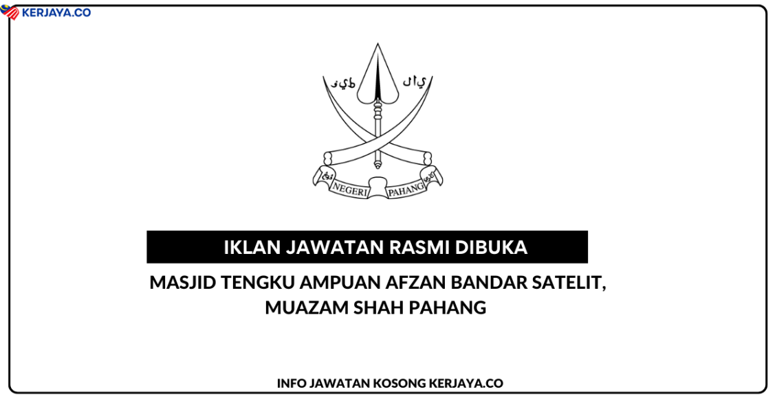 Permohonan Jawatan Kosong Masjid Tengku Ampuan Afzan Bandar Satelit, Muazam Shah Pahang.