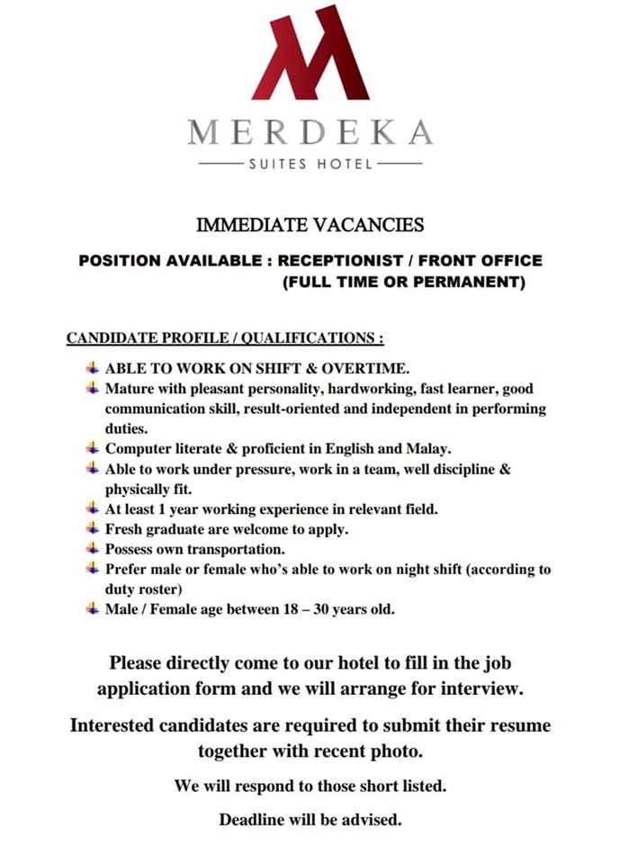 Jawatan Kosong Terkini Merdeka Suites Hotel.