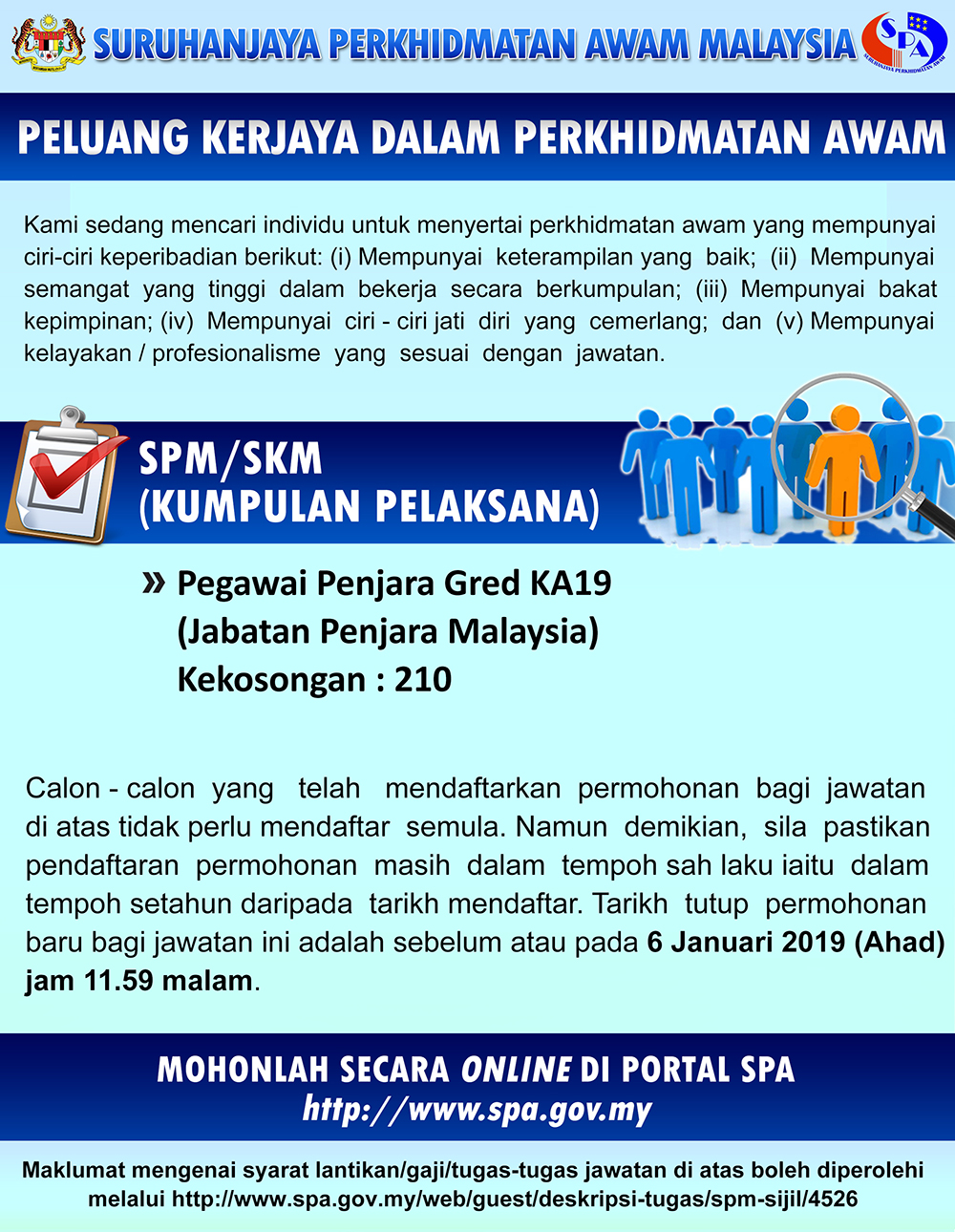 Permohonan Jawatan Kosong Terkini Pegawai Penjara Gred KA19.
