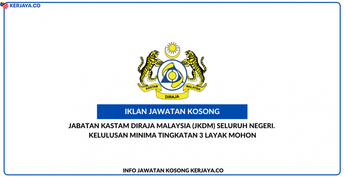 Jabatan Kastam Diraja Malaysia (JKDM) Seluruh Negeri. Kelulusan Minima Tingkatan 3 Layak Mohon