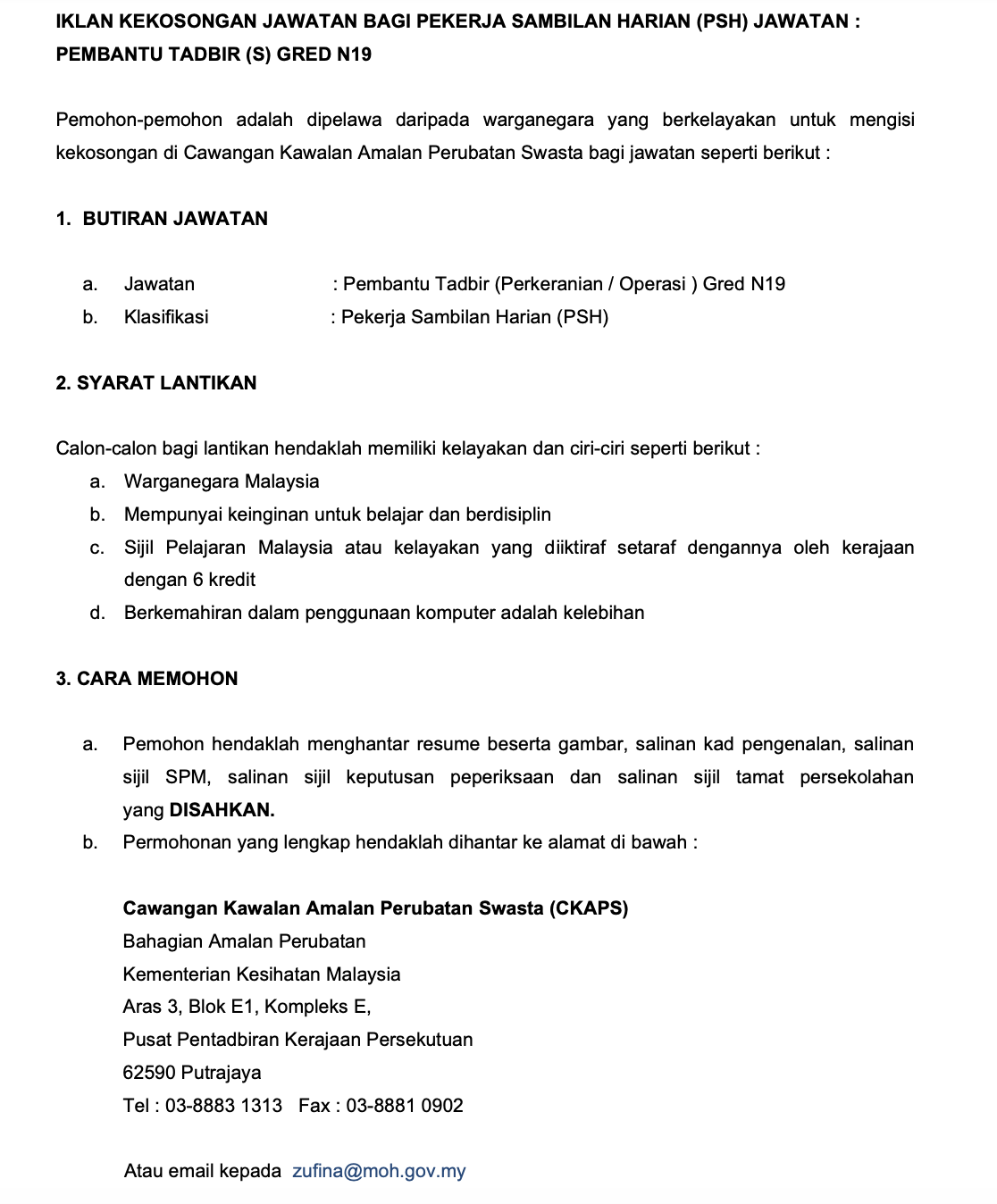 Permohonan Jawatan Kosong Kementerian Kesihatan Malaysia.