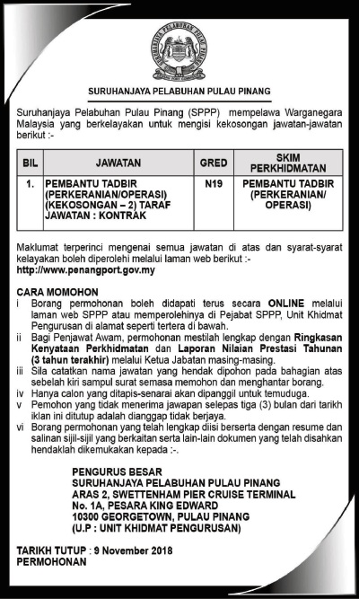 - Nama Majikan: Suruhanjaya Pelabuhan Pulau Pinang