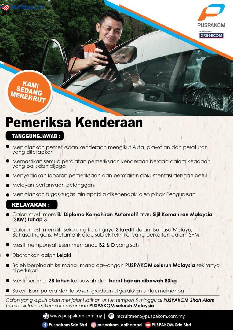 Permohonan Jawatan Kosong PUSPAKOM. Berikut merupakan maklumat iklan kerja kosong yang ditawarkan oleh majikan terlibat. Maklumat kekosongan ini adalah seperti yang diiklankan. Portal Kerjaya Jawatan Kosong Terkini hanya menyiarkan untuk memudahkan permohonan anda. Untuk memohon sila ikut langkah seperti di bawah. Calon berkelayakan dan memenuhi syarat-syarat yang ditetapkan untuk memohon mengisi kekosongan kerja yang diiklankan […]