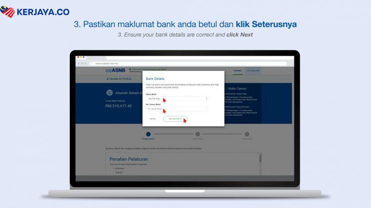 Langkah 3: Pastikan Maklumat Bank Anda Betul. Klik Seterusnya