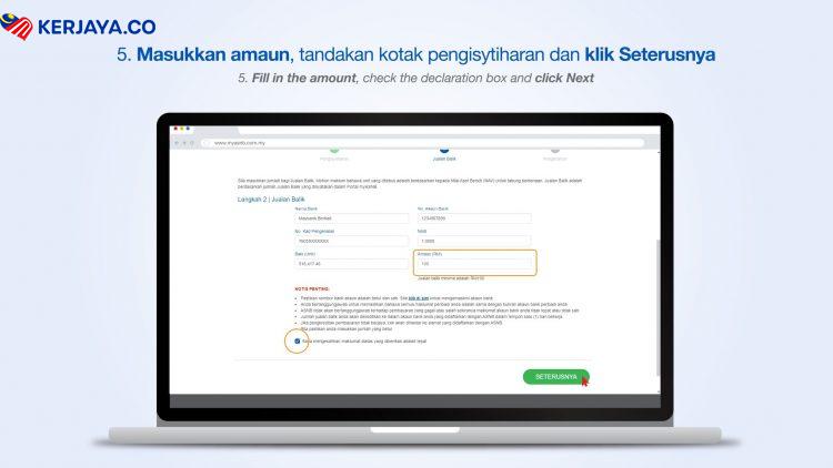 Langkah 5: Masukkan Amaun, Tanda Kotak Pengisytiharan dan Klik Seterusnya