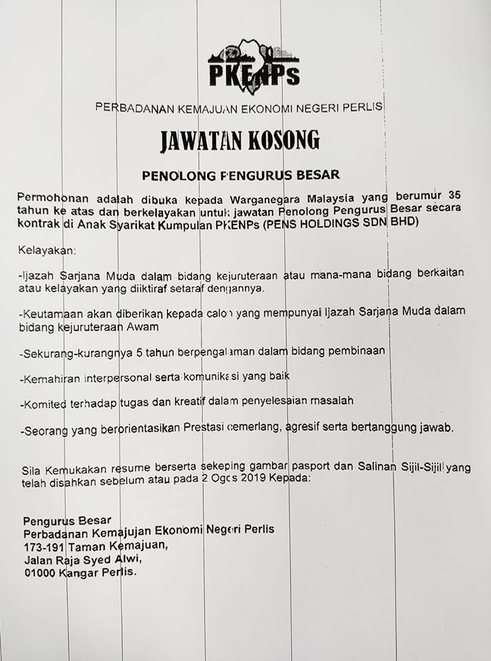 • Nama Majikan: Perbadanan Kemajuan Ekonomi Negeri Perlis (PKNPs)