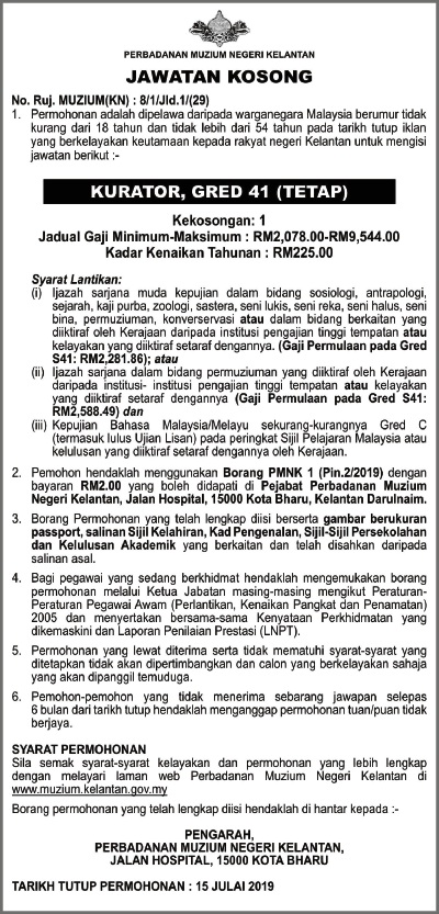 Permohonan Jawatan Kosong Perbadanan Muzium Negeri Kelantan.