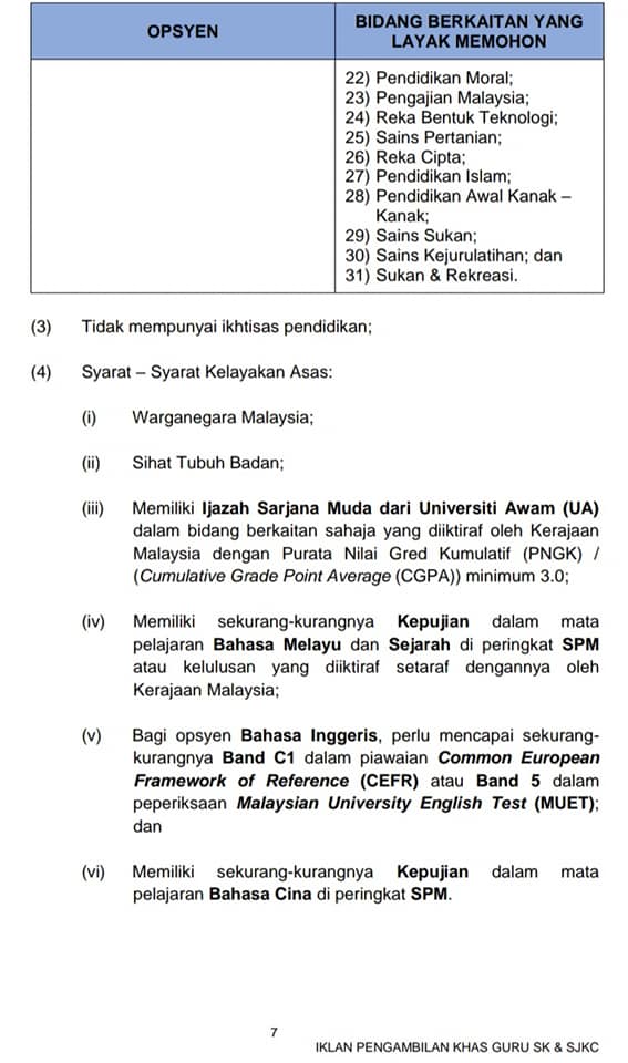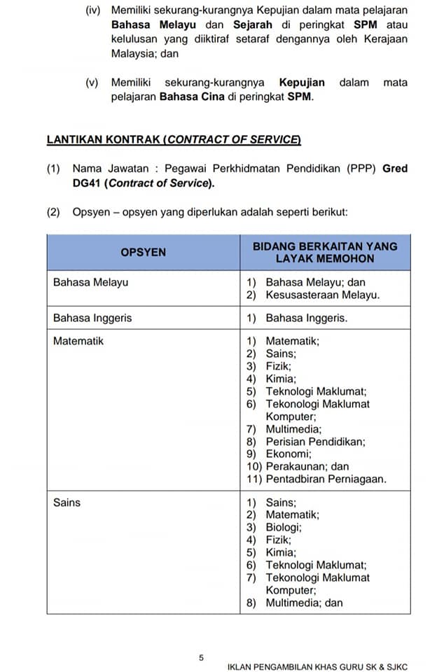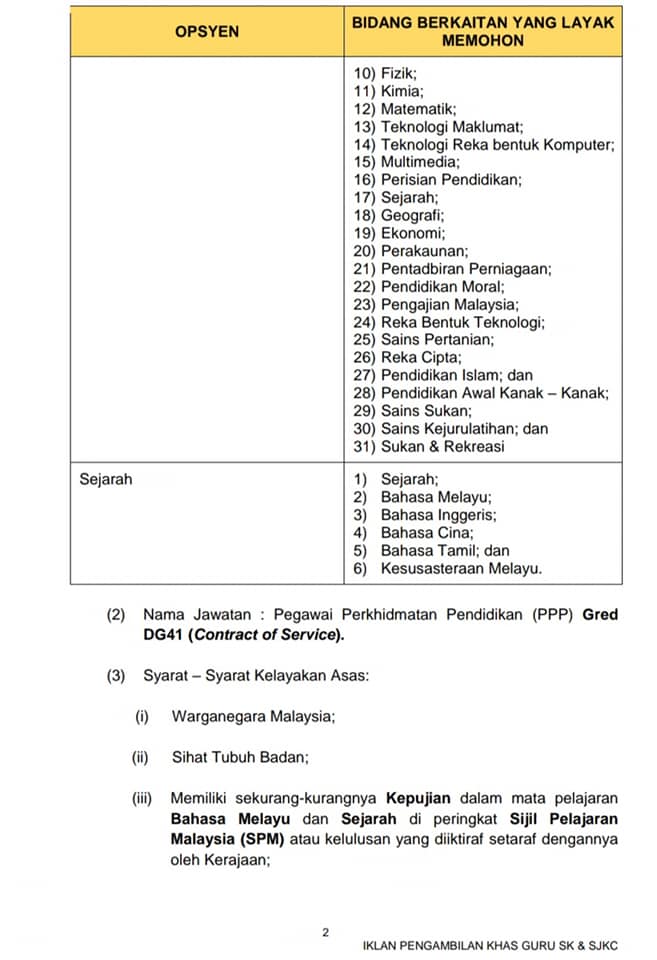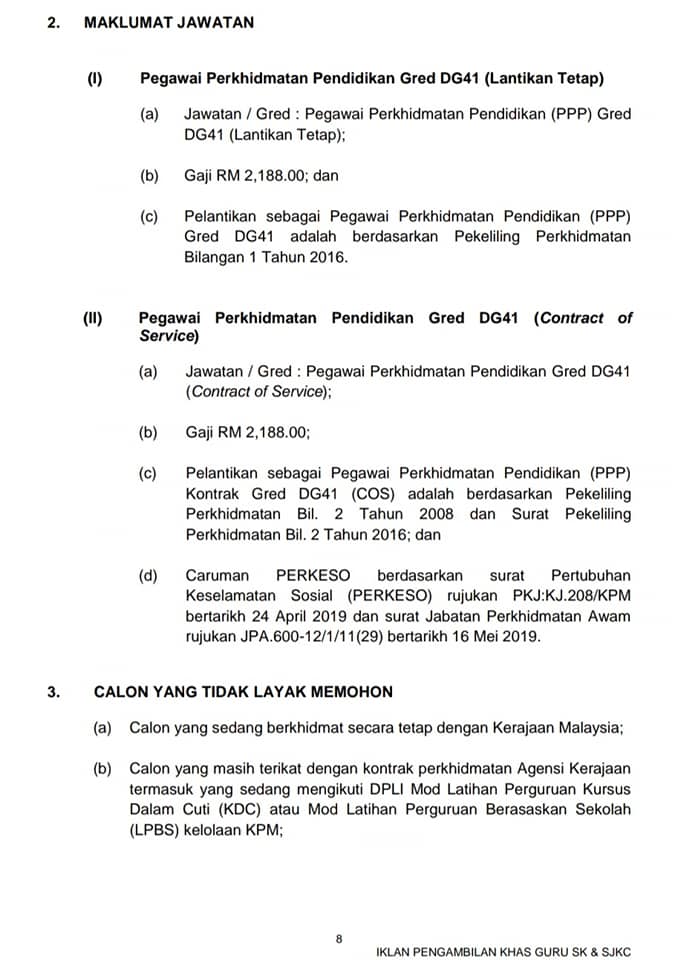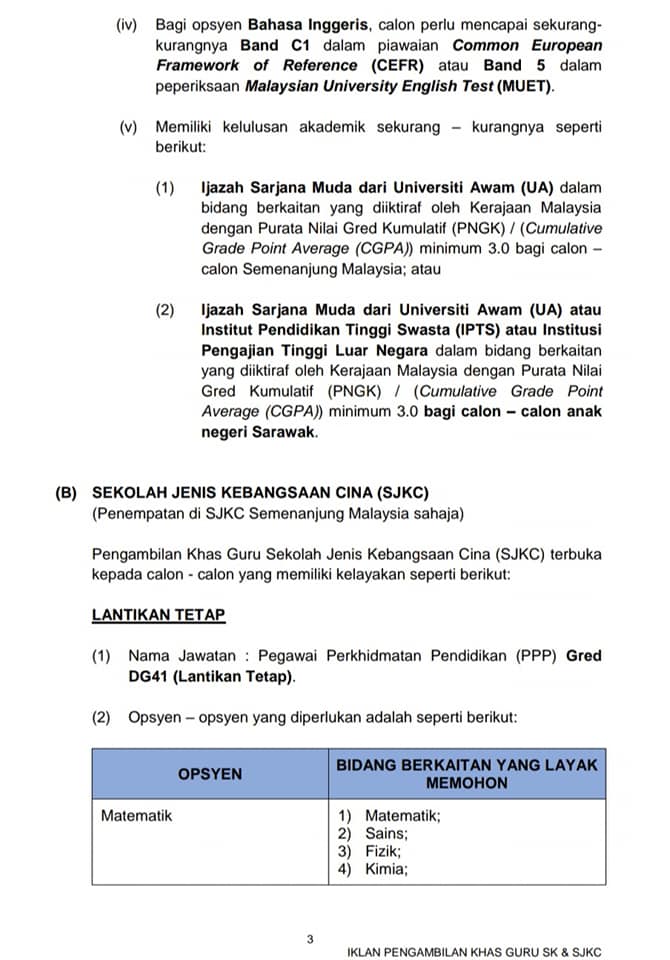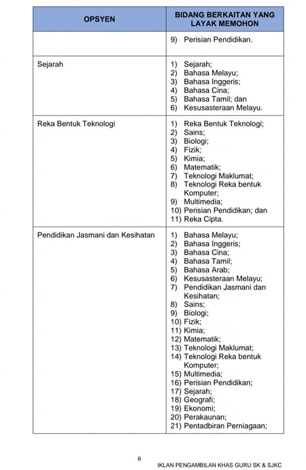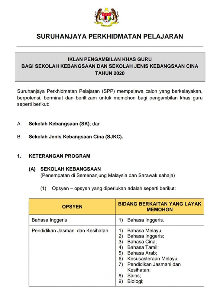 Di bawah merupakan iklan permohonan rasmi Guru Sekolah Rendah Kebangsaan (SK) & Sekolah Rendah Jenis Kebangsaan (SJKC) seperti yang diiklankan.