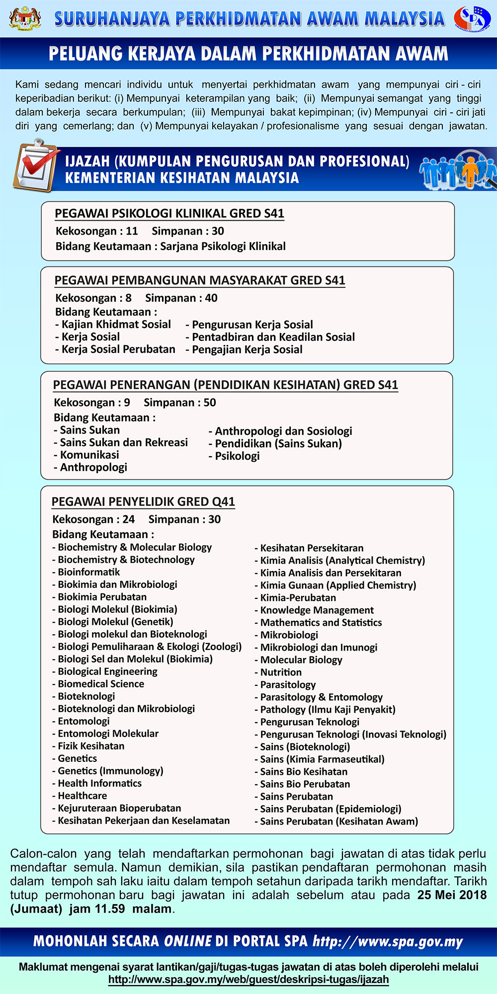 - Tarikh Tutup Permohonan: 25 Mei 2018