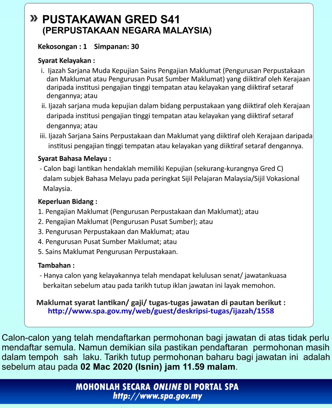Jawatan Kosong Terkini Perpustakaan Negara Malaysia.