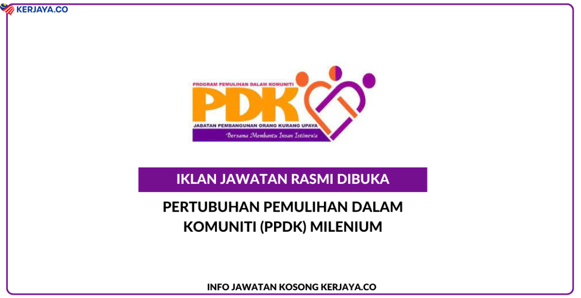 Permohonan Jawatan Kosong Pertubuhan Pemulihan Dalam Komuniti (PPDK) Milenium.