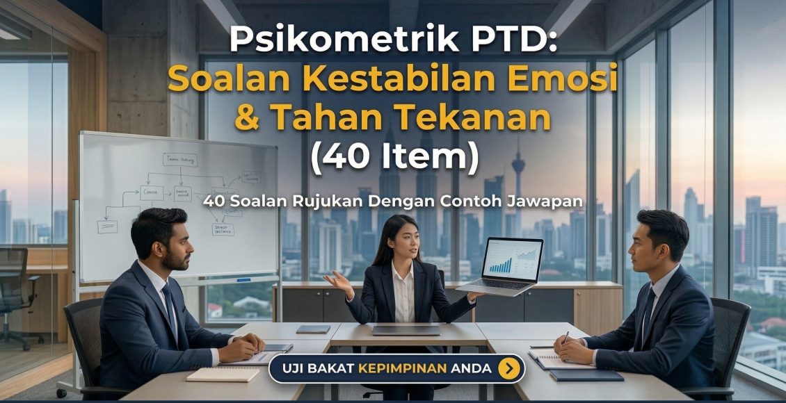 Kestabilan emosi ialah aset besar untuk PTD. Selepas latihan ini, ulang set umum di contoh soalan psikometrik PTD dan siapkan diri untuk temuduga yang sering menyentuh tekanan kerja melalui soalan temuduga PTD.