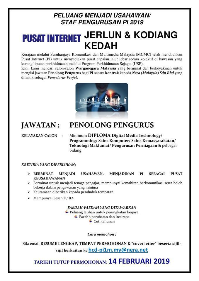 - Tarikh Tutup Permohonan: 14 Februari 2019