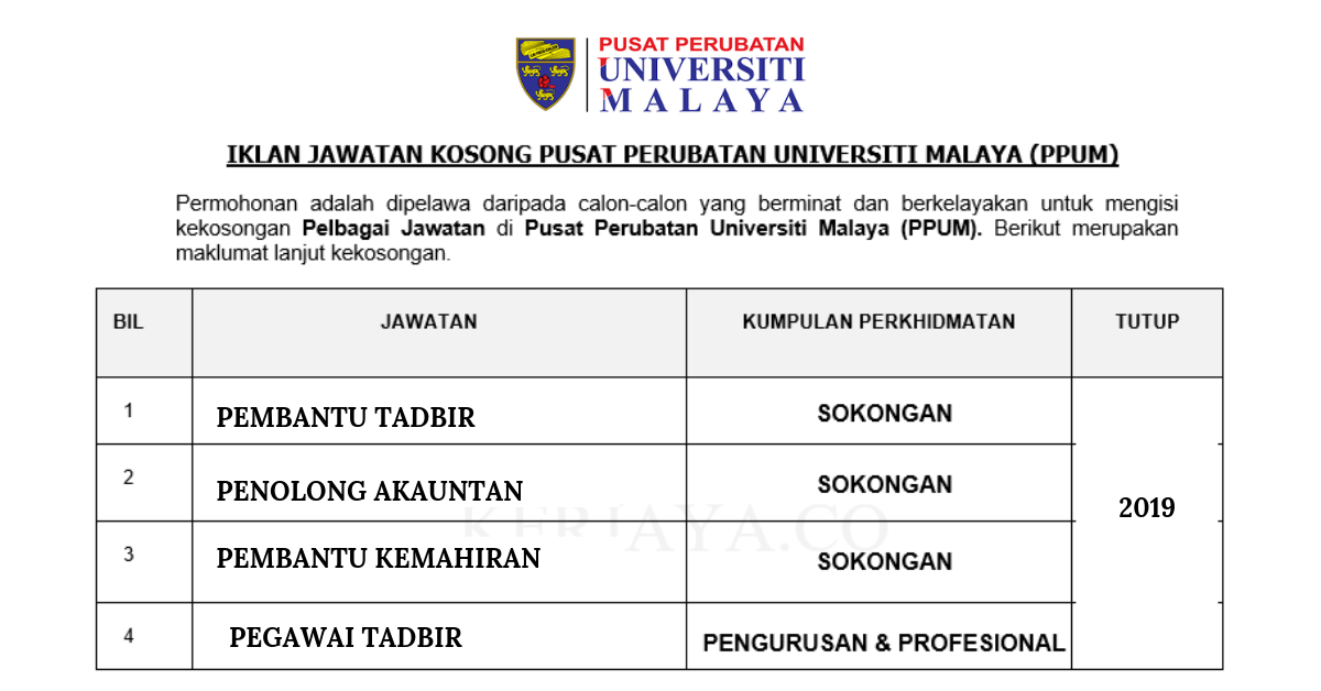 Return to "Pusat Perubatan Universiti Malaya (PPUM) ~ Kekosongan Pegawai Tadbir, Pembantu Tadbir &…" pusat-perubatan-universiti-malaya-ppum Next