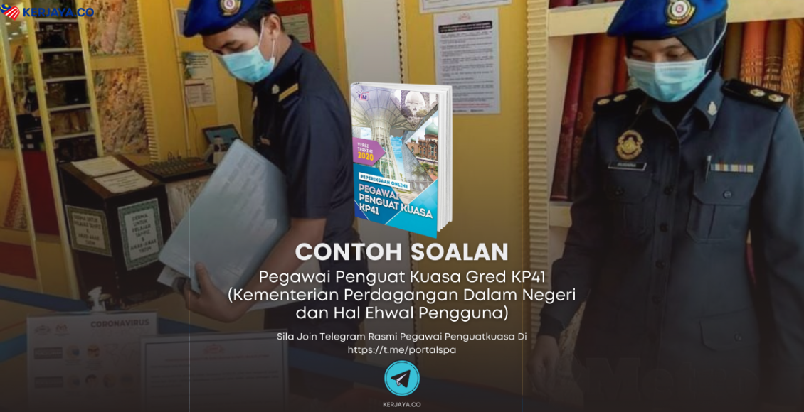 Untuk maklumat lanjut mengenai format peperiksaan Pegawai Penguatkuasa Kementerian Perdagangan Dalam Negeri dan Hal Ehwal Pengguna , tugas-tugas seorang Pegawai KP41, huraian ringkas jawatan dan contoh soalan peperiksaan KP41 pastikan anda habiskan membaca perkongsian pihak kami di bawah.