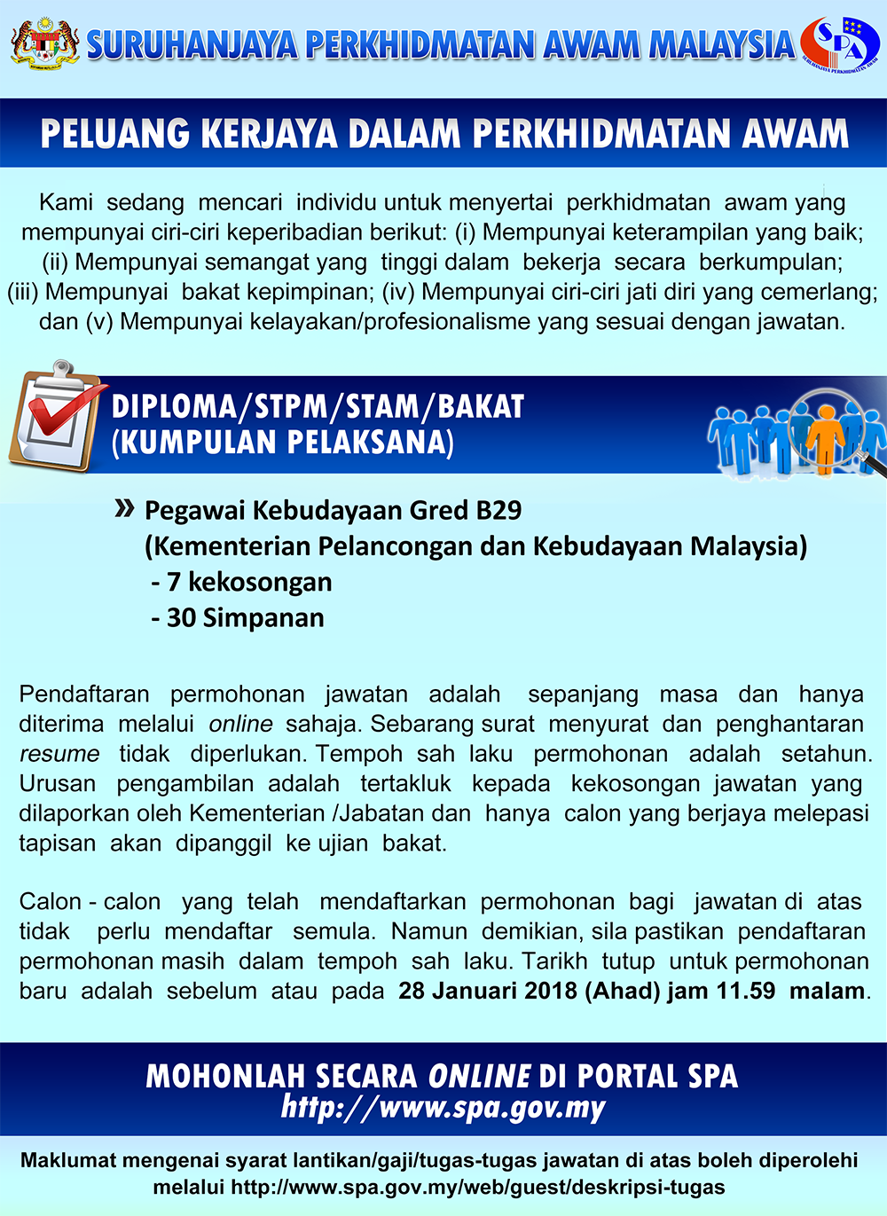 - Tarikh Tutup Permohonan: 28 Januari 2018