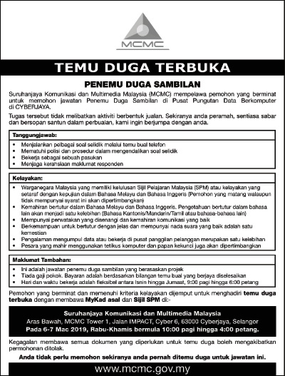 Temuduga Terbuka Suruhanjaya Komunikasi dan Multimedia Malaysia (MCMC)