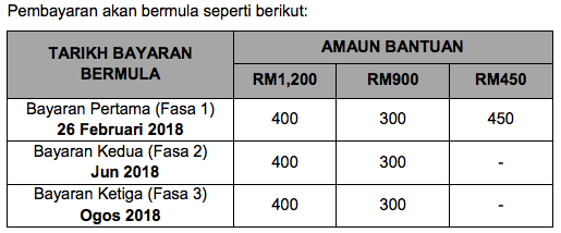 JADUAL PEMBAYARAN BR1M 2018 FASA KEDUA