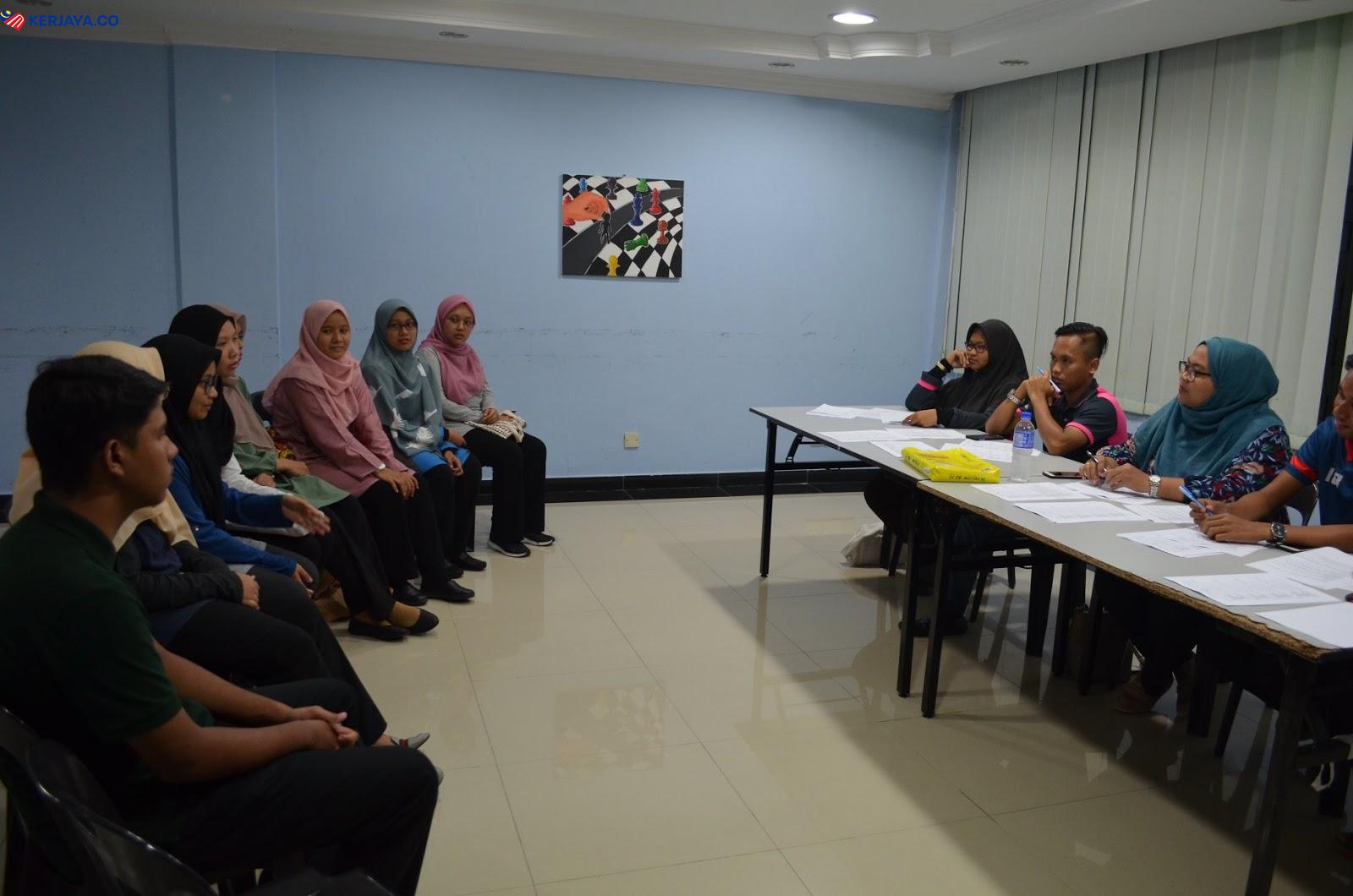 Banyak pula nama disebut untuk masuk ke dalam bilik temuduga. Kemudian bila anda masuk ke bilik temuduga ternyata anda akan ditemuduga secara berkumpulan.