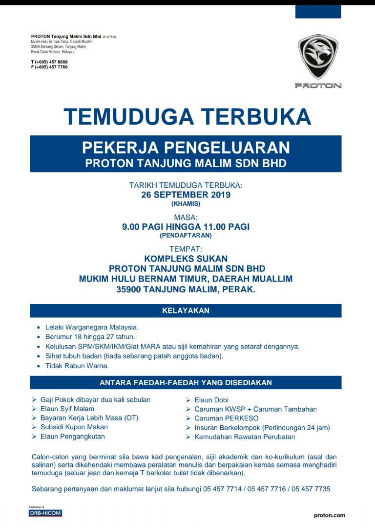 Temuduga Terbuka Proton Tanjung Malim.