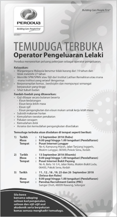 - Tarikh Tutup Permohonan: 11-26 September 2018