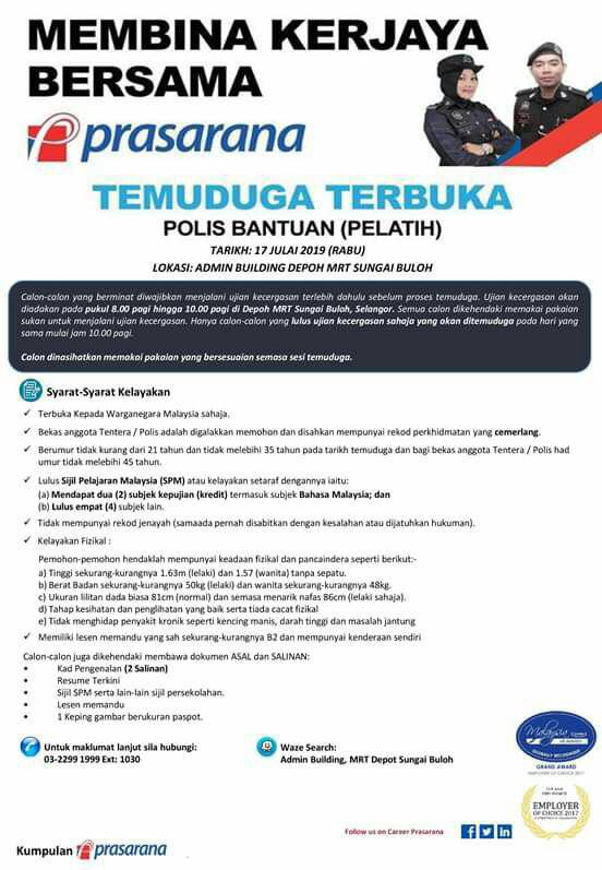 Permohonan Jawatan Kosong PRASARANA.