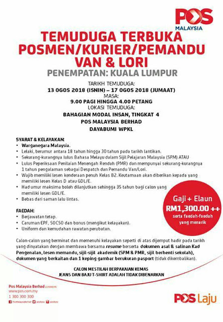 Permohonan Jawatan Kosong POS Malaysia Berhad.