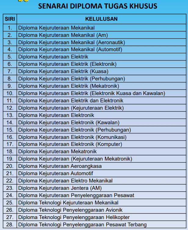 - Nama Majikan: Tentera Udara Diraja Malaysia