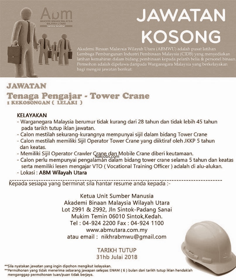 Permohonan Jawatan Kosong Akademi Binaan Malaysia (ABM).