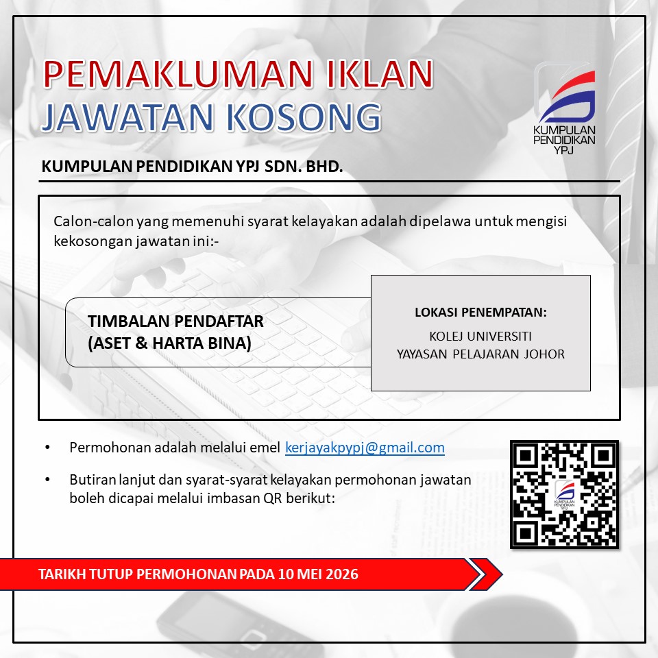 Terkini Iklan Jawatan Kumpulan Pendidikan YPJ ~ Kekosongan Jawatan Timbalan Pendaftar (Aset & Harta Bina)