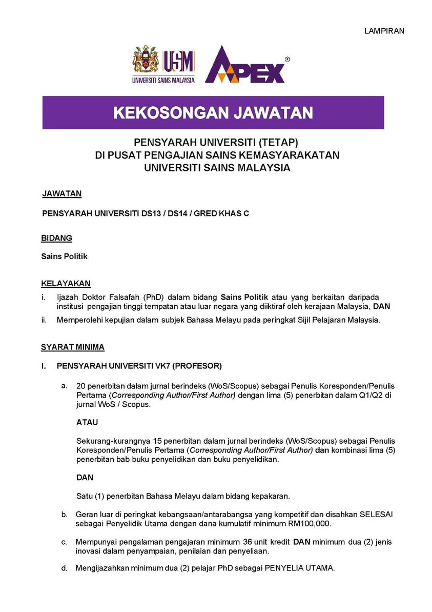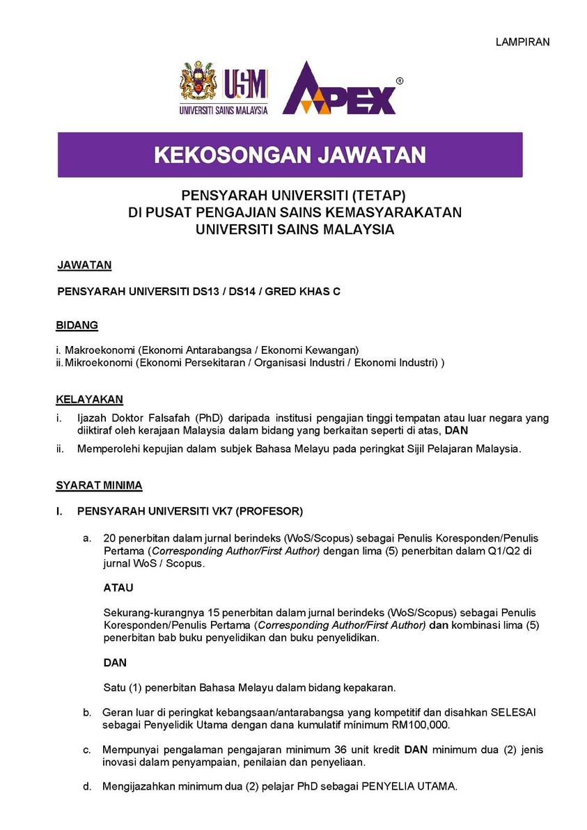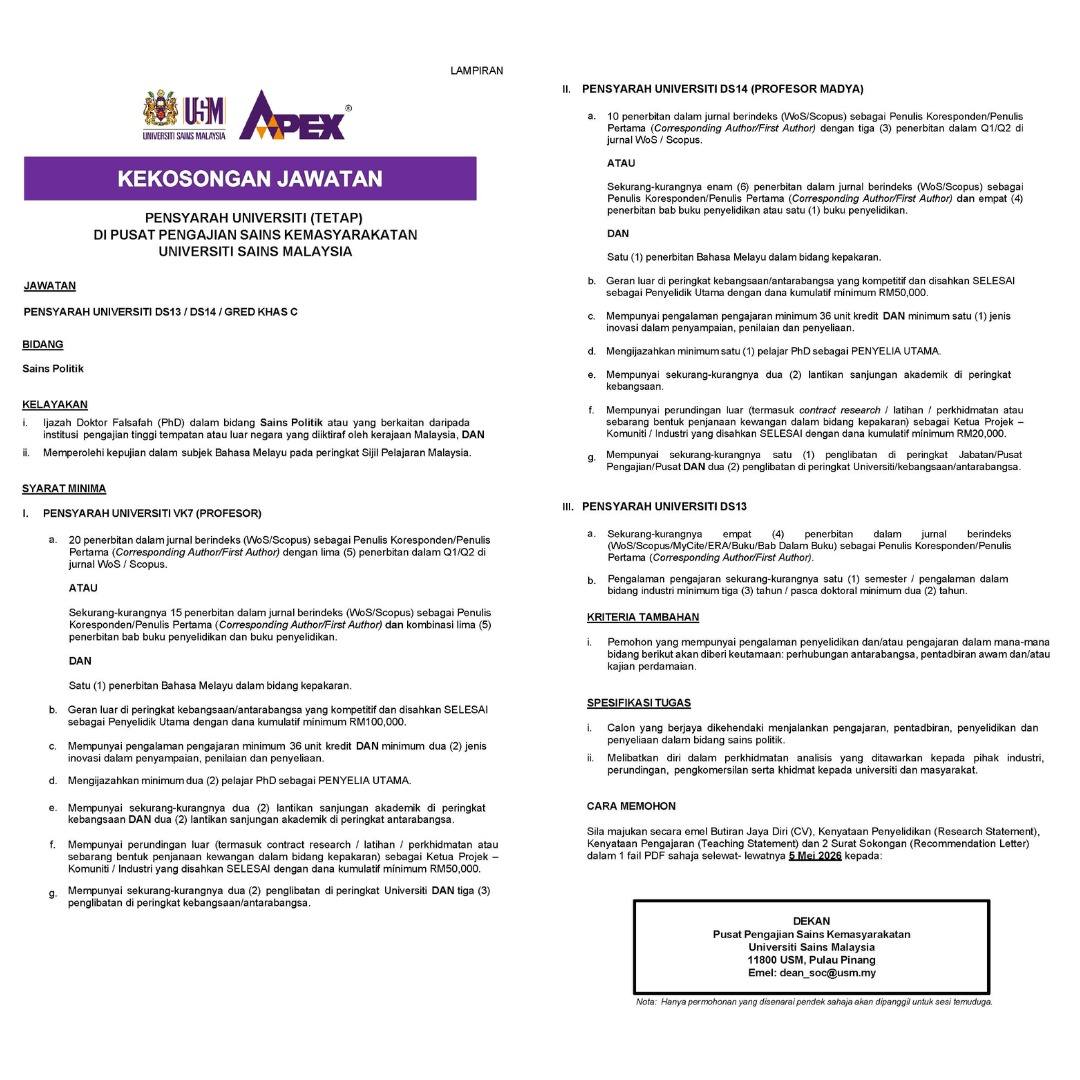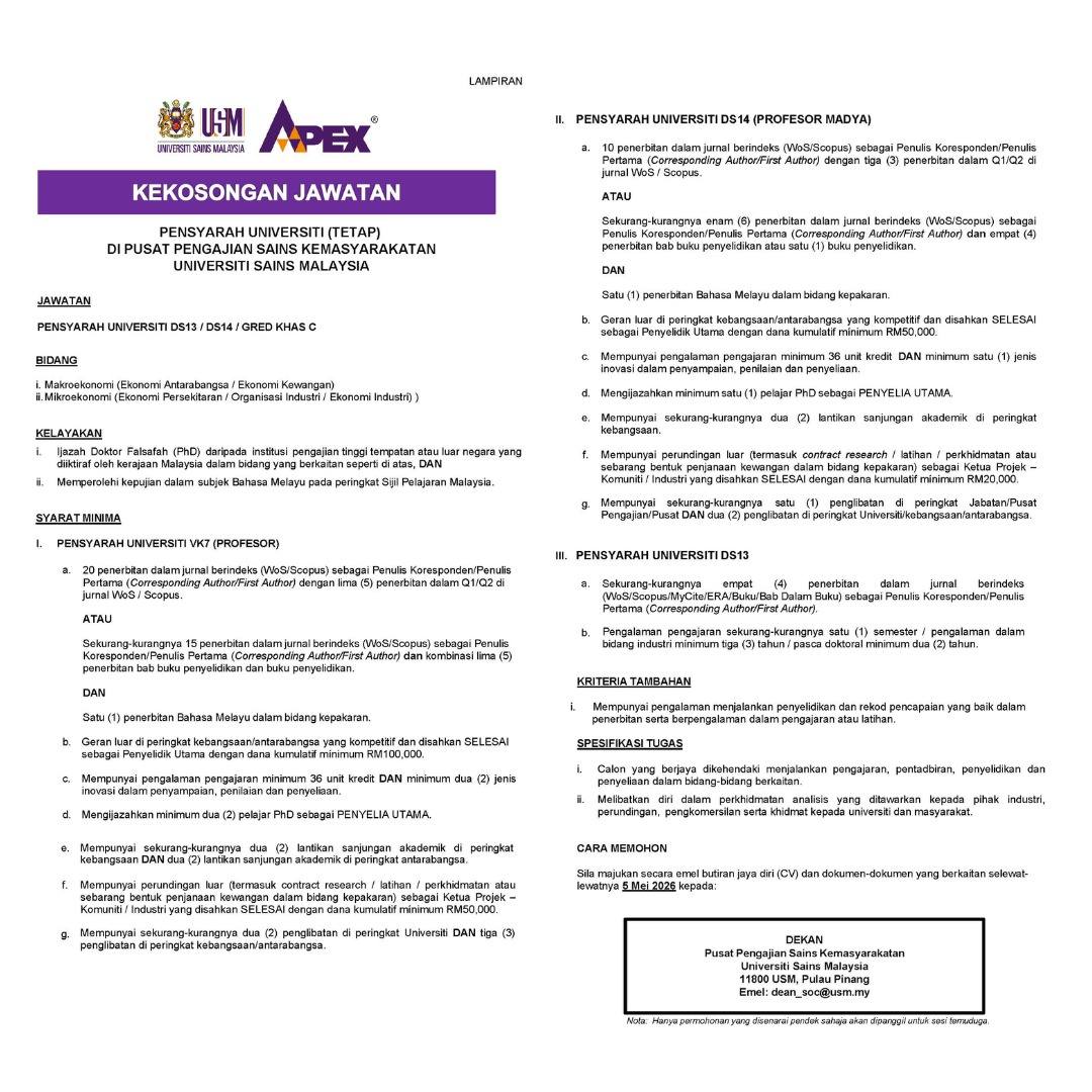 Terkini Iklan Jawatan Universiti Sains Malaysia (USM)